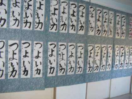 書き初めをしている時、一文字うまくいくと次失敗した、とか名前で失敗したとか子供たちの様々な声が聞こえてきました。でもできあがった作品からは、一生懸命気持ちをこめて書いた様子が伝わってきます。