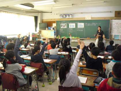 先生が、「このような勉強をします」と伝えるのではなく、子どもの発想から、作り出しています。子どもたちは、やわらかい頭で前向きに学習にのぞんでいます。とても気持ちのよい授業風景でした。
