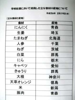 2月19日(水)本日の給食産地
