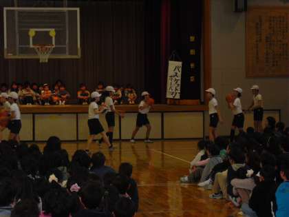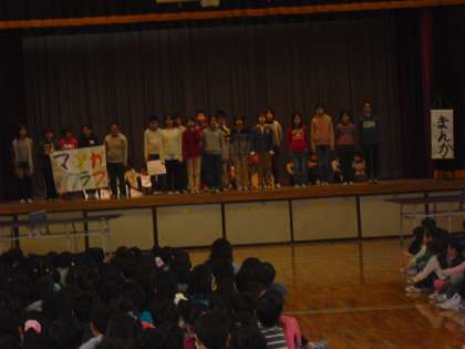 集会の時間を使って、1年間のクラブ活動の内容を発表する集会が行われました。今日は、前半です。