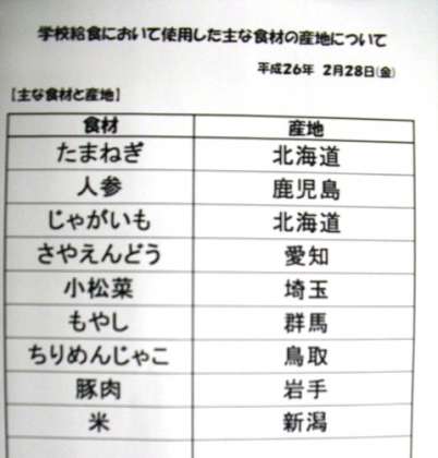 2月28日(金)本日の給食産地