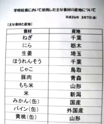 3月7日(金)本日の給食産地