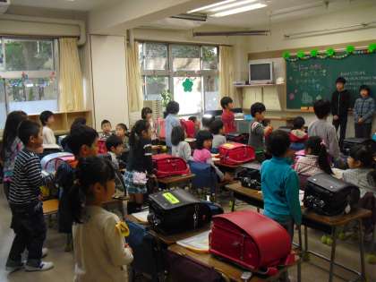 昨日入学式を終え、今日からいよいよ小学校での生活を始めた1年生。今朝の教室をのぞいてみました。