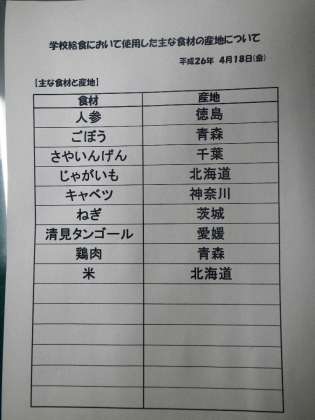 主な食材の産地です。