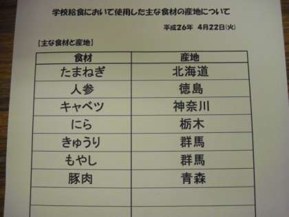 主な食材の産地です。