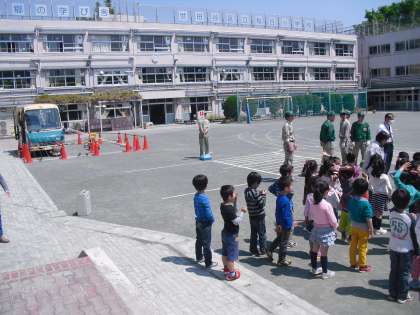 校外委員会のご協力を得て、アマト運輸の方にいらしていただき、実際に車が動いている状態で横断歩道を渡ったり、車に乗ってみて見えない部分があることを体験したり・・・・体験から学ぶ貴重な勉強をしました。