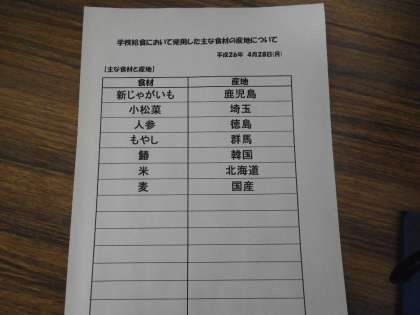主な食材の産地
