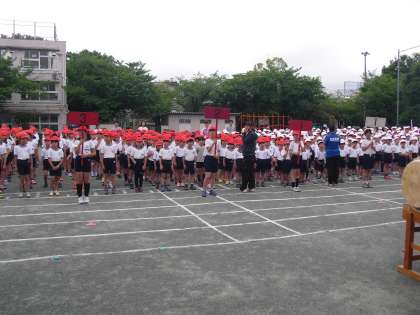 今日は閉会式の練習、大玉送り、午後の応援練習です。全校が集まると、高学年がきちんとした態度で整列できることがとてもうれしく思います。応援団の練習も毎朝の練習を重ね、なかなかきびきびした応援ができるようになっています。これも5年生6年生の子どものがんばりです。