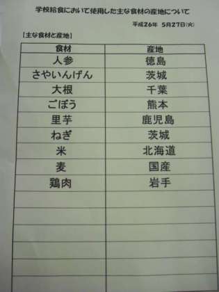 呉汁は群馬県の郷土料理です。大豆を水に浸してすりつぶした汁「ご(豆汁、豆油)」といい、「ご」を入れた味噌汁なので「呉汁」と呼ばれるようになった、と言われています。給食では大豆をやわらく煮て、ミキサーですりつぶし、さらに野菜と一緒に煮ます。そうすることで、豆の甘みがひきたちます。
