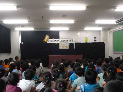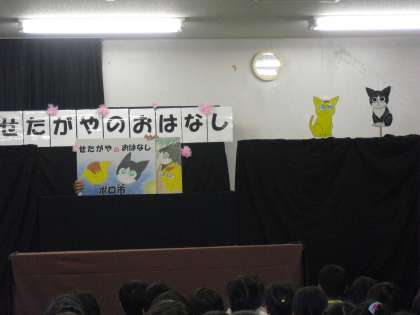 本校の学校運営委員会プロジェクトに、「民話の会」の活動があります。この会では、せたがやの民話を自分たちで紙芝居形式に作成し、紙芝居を手作りで仕上げています。作品を作成しながら、子どもたちにお話を紹介しています。