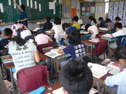 今日の6年生の授業は、さすが6年生。一人学習ではよく考え自分の考えを整理していました。全体の交流では、積極的に発言し、「なるほど」と思う考えを伝えていました。 国語の時間に培った力を生かして、夏休み中にはおおいに読書に親しんでほしいと思います。