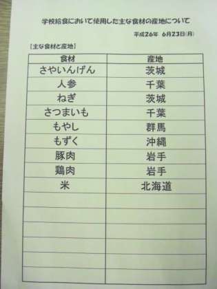 6月23日(月) 給食食材産地