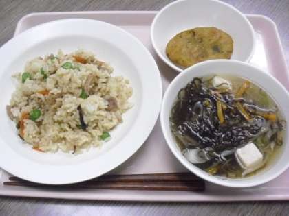 今日は「慰霊の日」です。それにちなんで沖縄献立にしました。もずくスープのもずくは沖縄から取り寄せました。