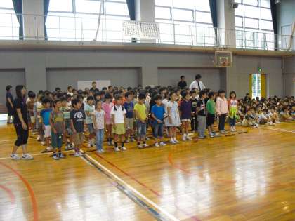 最後に全校児童で「もみじ」を合唱しました。音の重なりあいがきれいにできました。今日はあいにくの天候ですが、子どもたちの気持ちは朝から穏やかになっていると思います。