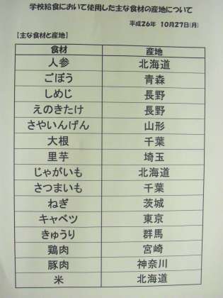 10月27日(月) 給食食材産地