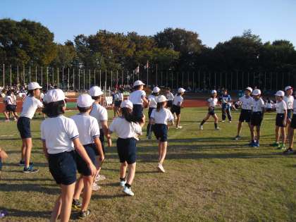 秋晴れの中、延期となった連合運動会が実施されました。変則のプログラムで、12時45分開会式で始まりました。