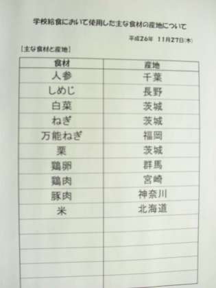 11月27日(木) 給食食材産地