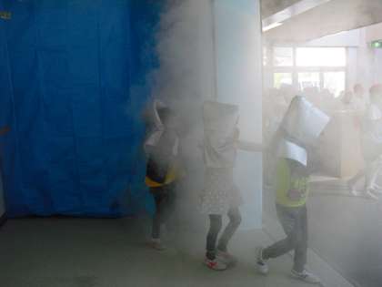 毎月行う避難訓練ですが、今日はいつもの訓練とは少し違いました。煙の中を通る体験をしました。火災の発生の時は、大量の煙が出ます。煙を吸って呼吸できなくなってしまうこともあります。そのような煙の怖さを知るとともにでは、どのようなことに木をつけて避難することが大事なのかを体験しました。