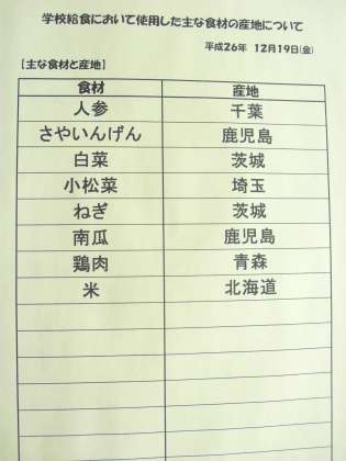 12月19日(金) 給食食材産地