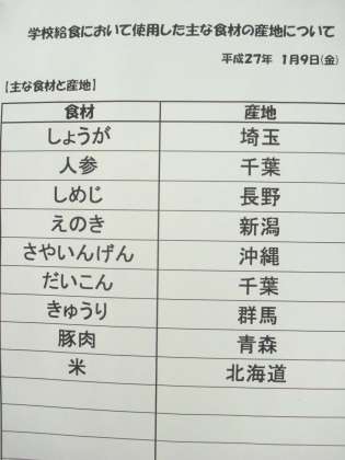 1月9日(金) 給食食材産地