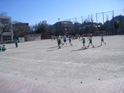 体育の時間。校庭では、4年生がタグラグビーに取り組んでいました。楽しそうにボールを追いかけています。小さなラグビーボール。どこへいくかわからない面白さもあるようです。寒い毎日ですが、体力つくりをしながら、元気に過ごしてほしいと思います。