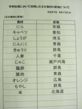 3月17日(火) 給食食材産地