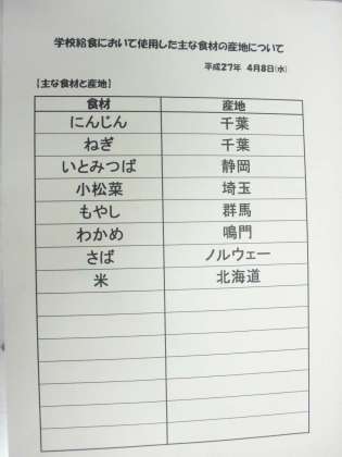 4月8日(水) 給食食材産地