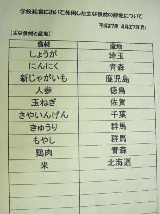 4月27日(月) 給食食材産地
