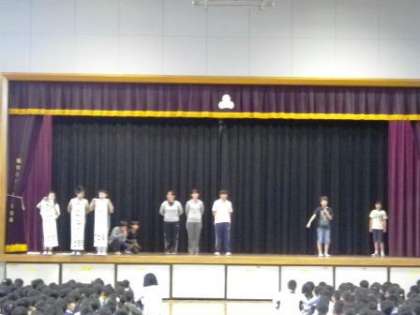 この集会は、新しく松丘小学校に赴任された先生方や主事さん方を紹介する集会です。