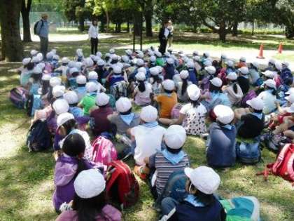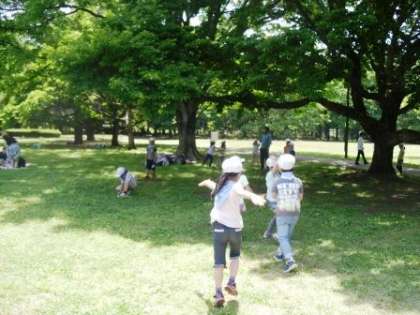 遠足で砧公園に行ってきました。春の砧公園の様子も観察しました。自分の木を見つけてその木をじっくり観察しました。そのあと、みんなで仲良く遊びました。学校に戻ってきた子どもたちは、少し疲れた顔をしていましたが、目はきらきらしていて、とても充実した時を過ごしてきたようでした。