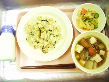 今日の給食「神葉ずし・牛乳・けんちん汁・和風ポテトサラダ」