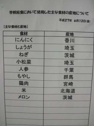 6月12日(金) 給食食材産地
