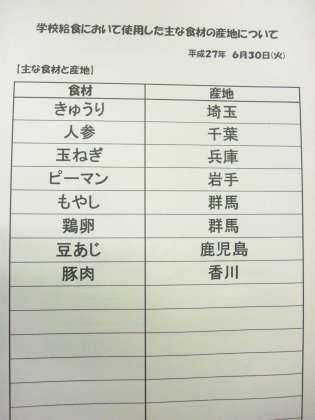 6月30日(火) 給食食材産地
