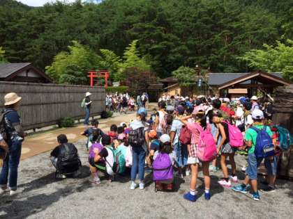日光江戸村に到着しました。班ごとに昼食の店を選びます。
