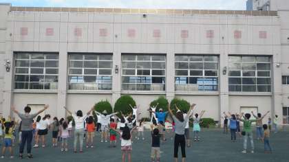 本日青空のもと、6時30分より松丘小学校校庭に集まって、元気いっぱい運動することができました。8月30日まで行っています。2学期が始まる前に生活習慣を戻せるとよいと思います。