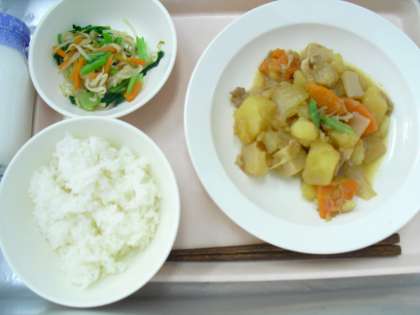今日の給食「ごはん・肉じゃが・野菜のあえ物・牛乳」