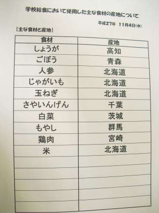 11月4日(水) 給食食材産地