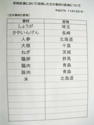 11月12日(木) 給食食材産地