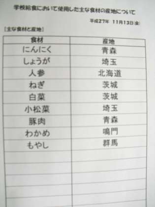 11月13日(金) 給食食材産地