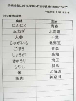 11月18日(水) 給食食材産地