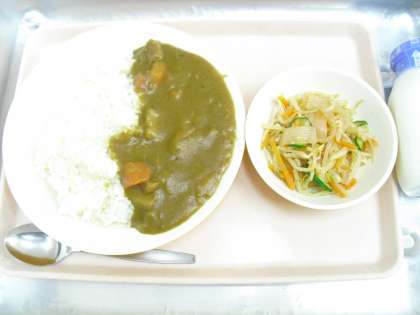 今日の給食「和風カレーライス・こんにゃくサラダ・牛乳」