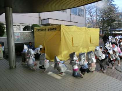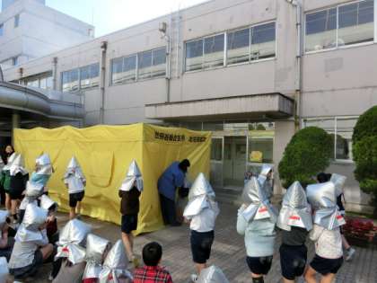 図工室からの出火を想定した避難訓練が行われました。避難訓練終了後、各学年、学校の防火シャッターを確認し、防火扉を通る場合の避難の仕方を確認しました。また、1・3・5年生は煙ハウスを利用した訓練も行われました。煙発生時の際、口を押えて、体を低くして通って行くようにする等の説明を聞きました。全員真剣に話を聞き、活動する姿が見られました。
