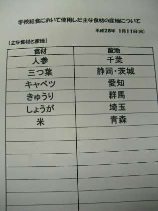 1月11日(火) 給食食材産地