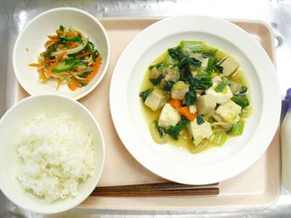 今日の給食「ごはん・とりすきに・切り干し大根のサラダ・牛乳」