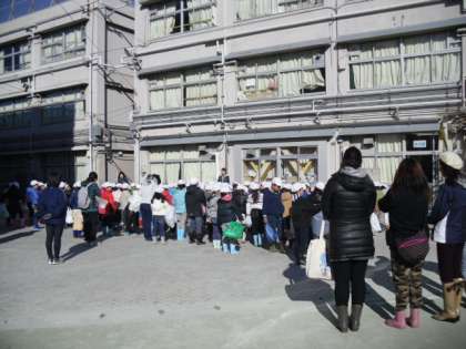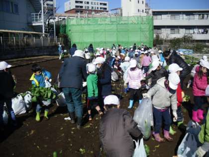 今日は、1年生が生活科の学習の一環として、学校近くの農園で小松菜とりを行いました。本来であれば先週に行く予定だったのですが、先週の雪の影響もあり延期になり、本日行くことになりました。当日は、保護者の方にも協力いただきました。子供たちは袋いっぱいにして、たくさんの小松菜を収穫して満足そうでした。