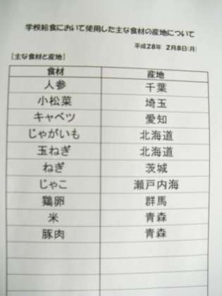 2月8日(月) 給食食材産地