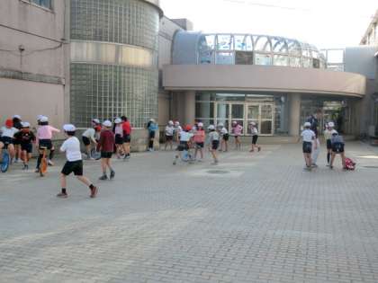 一週間が始まりました。今週の生活目標は、「めあてをもってなわとびに取り組もう」です。一人ひとりがめあてをもって休み時間などを過ごしてほしいですね。少しずつ短なわで活動する人も増えました。3年生の体育では、一輪車と竹馬をつかって体つくり運動を行っています。できることが増えると達成感も増します。がんばりましょう!
