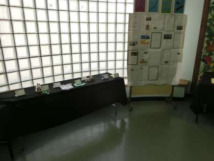 4年生の昇降口前のところに、クラブ発表の展示をしています。鉄道クラブのジオラマや、焼き物クラブの焼き物などがたくさん展示されています。子どもたち一人一人が、頑張ってクラブで作った作品を、ぜひご来校の際にご覧ください。