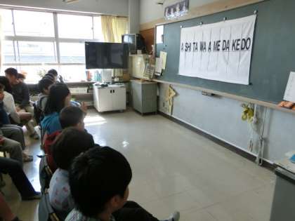 今日は5年生全クラスが、劇団四季による美しい日本語教室がありました。劇団四季の舞台に立たれてる役者さんに来ていただき、言葉を伝えるために気を付けなければいけないことを話していただきました。母音の言い方を練習し、最後にはみんなで気持ちをこめて「友達はいいもんだ」を歌いました。これからの生活でも話し方を生かしていけるといいですね。