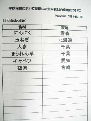 3月14日(月) 給食食材産地